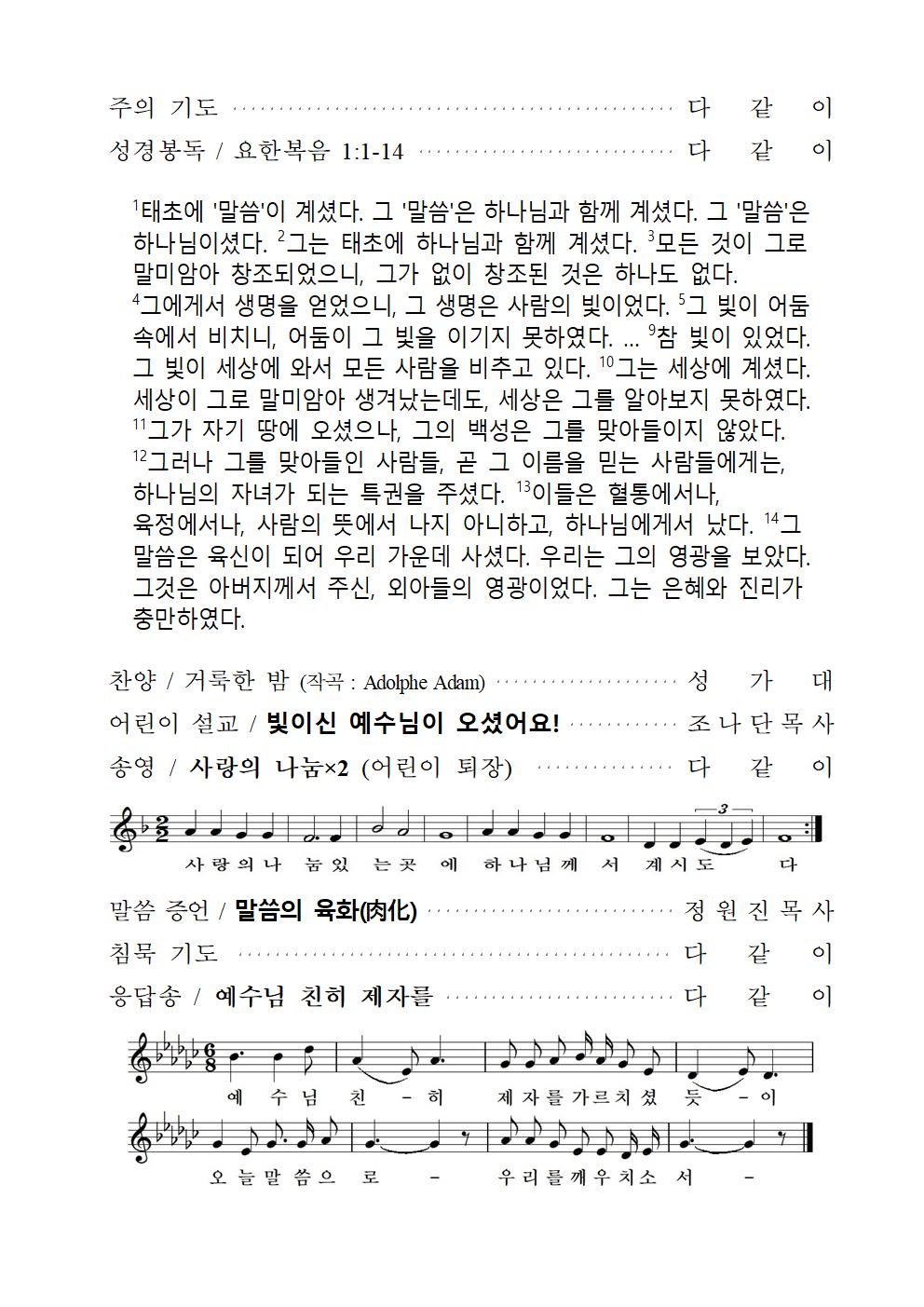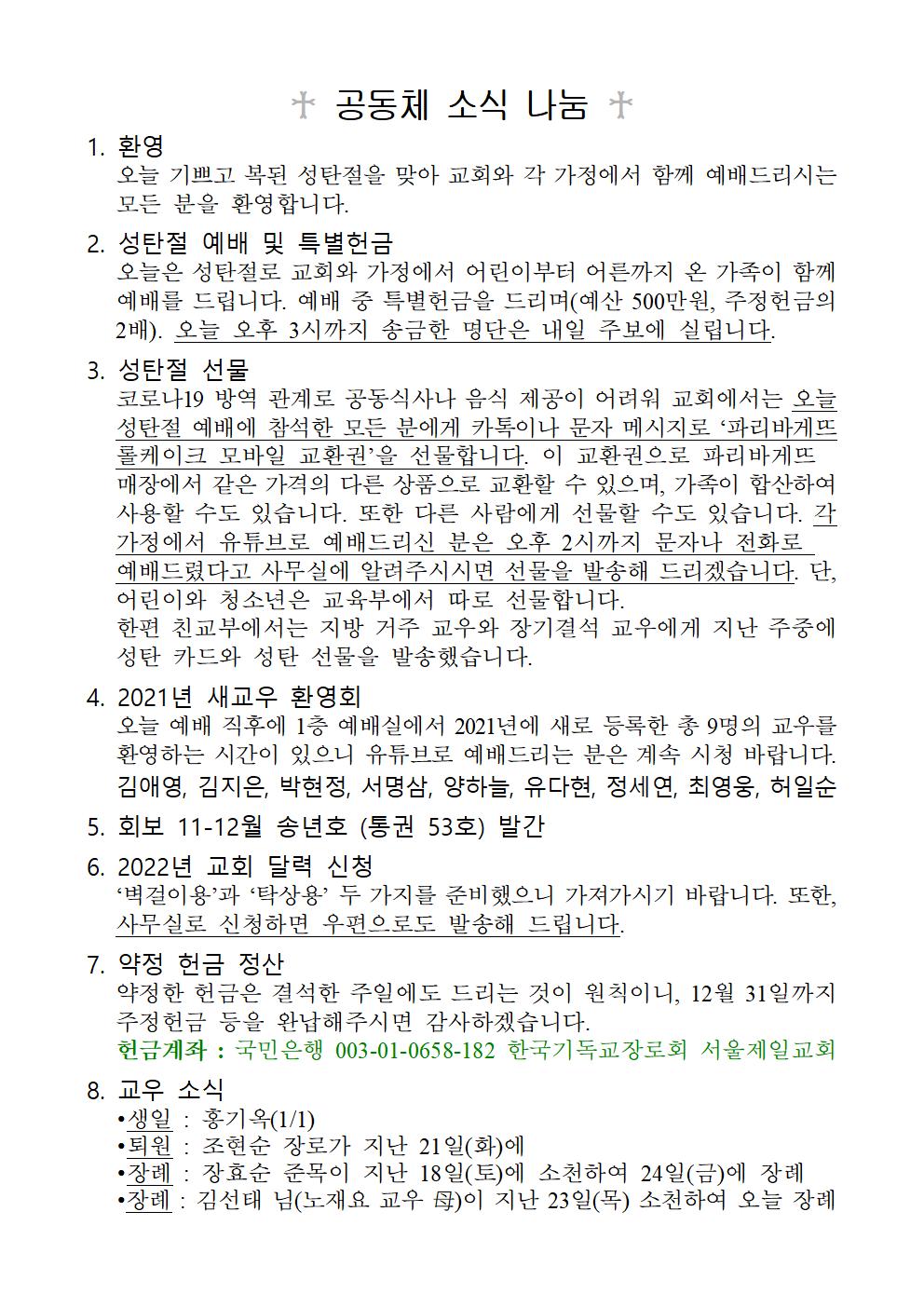 2021³â 12¿ù 25ÀÏ ¼ºÅºÀý ¿¹¹è ÁÖº¸