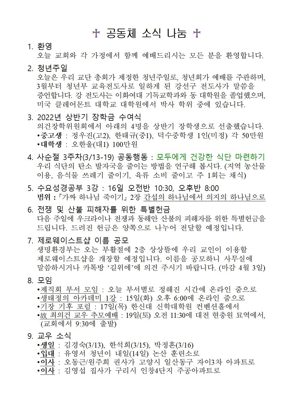 2022³â 3¿ù 13ÀÏ ÁÖº¸