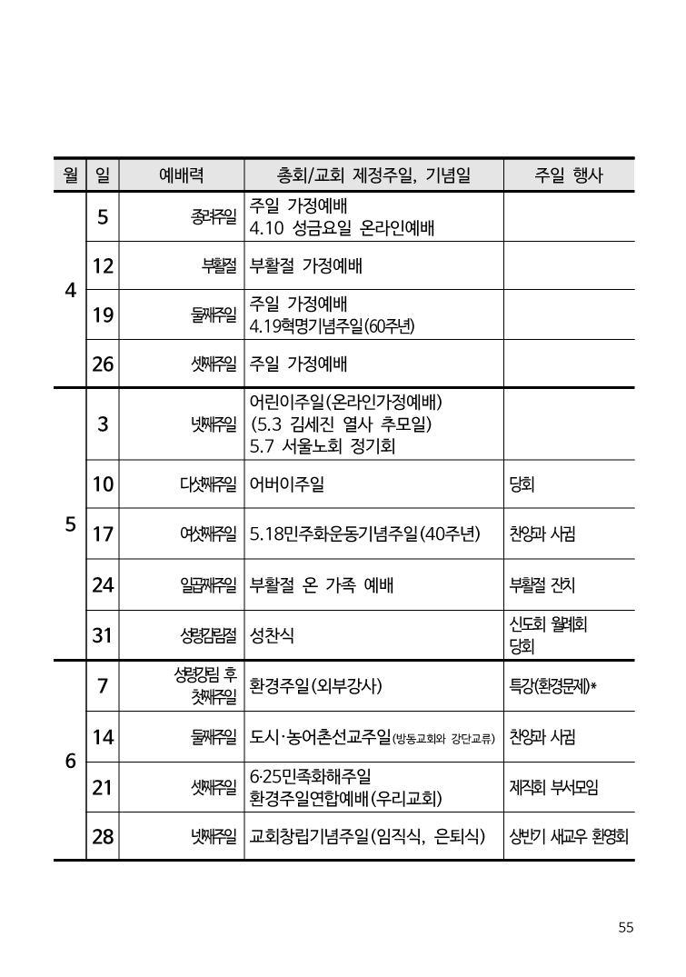 2020³â ±³È¸·Â ¹× ¸ñȸÀÏÁ¤