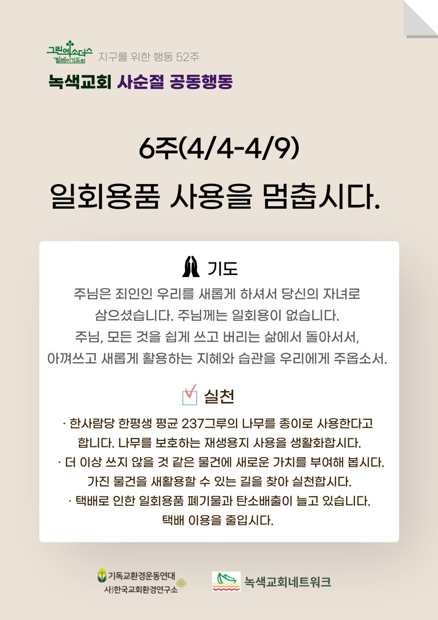 [¾È³»] ³ì»ö±³È¸ »ç¼øÀý °øµ¿Çൿ 6ÁÖ (4/3-4/10)
