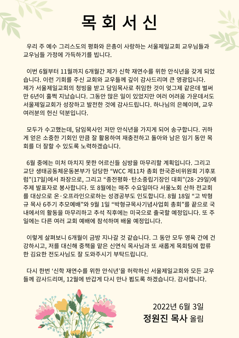 [°øÁö] ´ãÀÓ¸ñ»ç ¾È½Ä³â °ü·Ã ¸ñȸ¼½Å